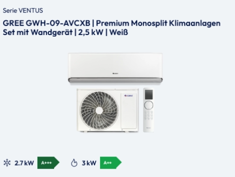 Leistung 2,7KW-7,1KW kühlen und heizen